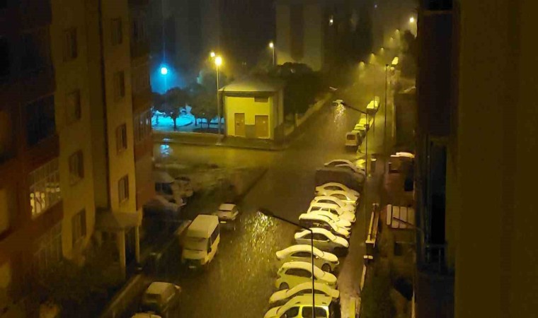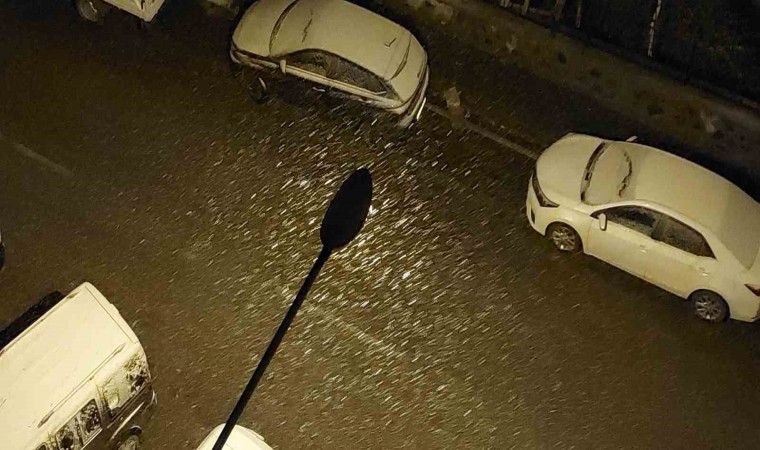 Erzurum’da gece yarısından itibaren etkili olan sağanak yağış, zaman zaman kara dönüştü.