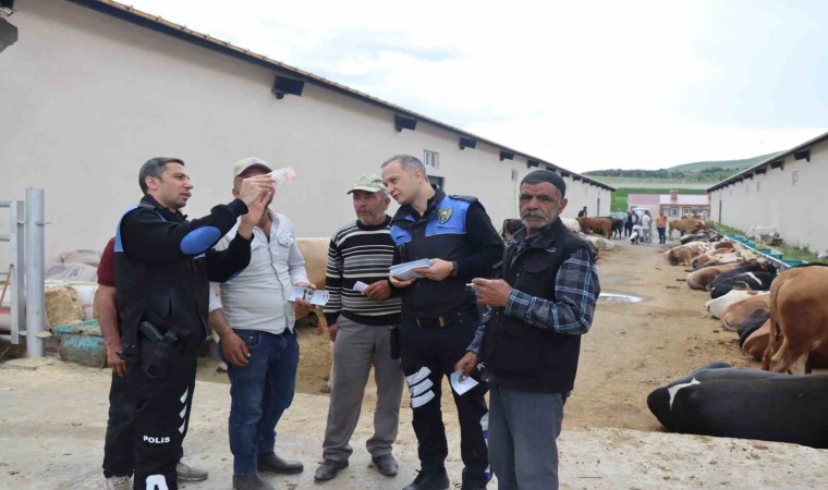 Erzurum’da polisi hayvan pazarında "sahte para" uyarısında bulunurken, Kurban Bayramı öncesinde vatandaşlara, sahte paranın gerçeğinden nasıl ayırt edileceğini gösterdi. Erzurum İl Emniyet Müdürlüğü Kaçakçılık ve Organize Suçlarla Mücadele (KOM) Şube Müdürlüğü ekipleri, aynı zamanda Doğu Anadolu Canlı Hayvan Pazarı’nda broşür dağıttı.