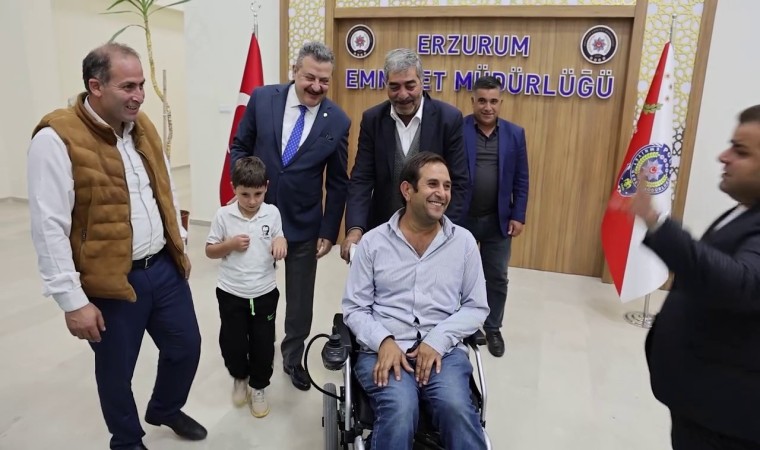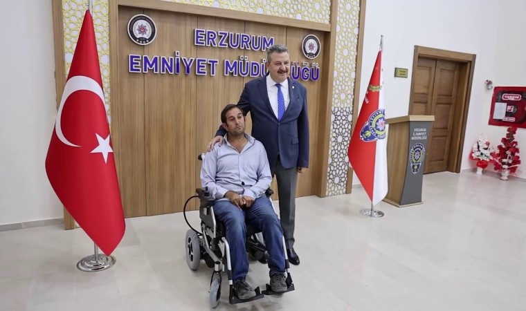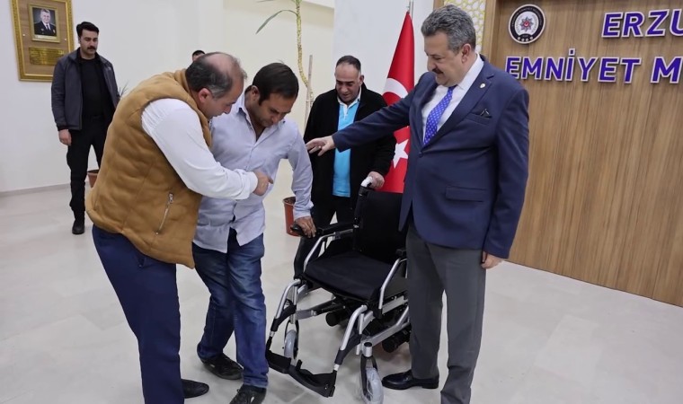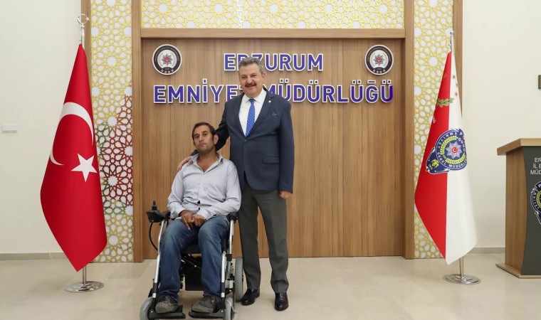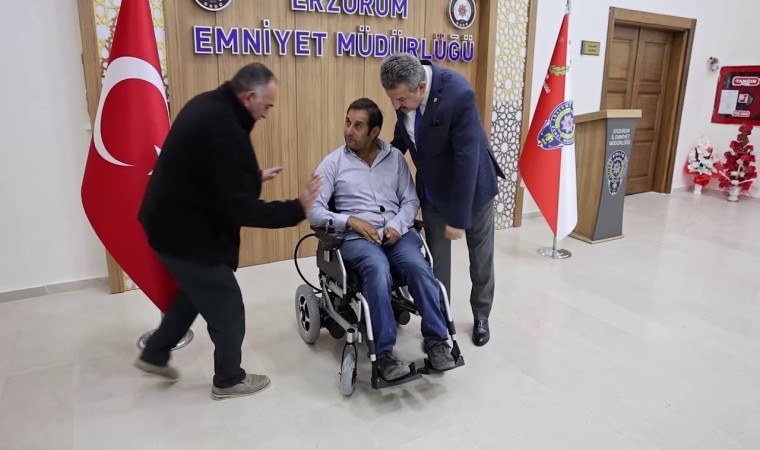 Erzurum Emniyet Müdürü Kadir Yırtar, Hınıs ilçesinde yaşayan engelli vatandaşa akülü tekerlekli sandalye hediye etti.