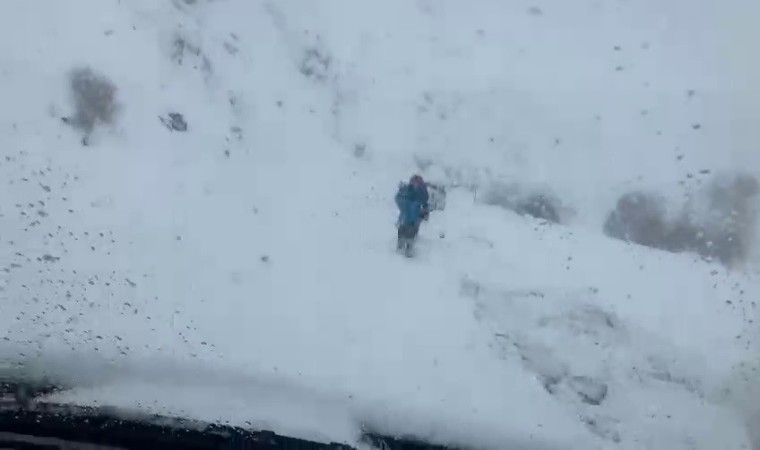 Çığın düştüğü bölge vatandaşların cep telefonu kamerasıyla görüntülendi.