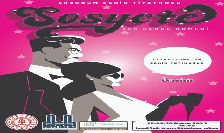Erzurum Şehir Tiyatrosu Kültür ve Turizm Bakanlığı, Erzurum Büyükşehir belediyesi, İstanbul Medikal Termal katkılarıyla hazırlanan “Sosyete” adlı tek perdelik komedi yetişkinlere, çocuklara ise “Bakkal amca” adlı oyunlarını 01 aralık-20 aralık 2023 tarihlerinde Ankara-Bursa-İstanbul ve Kocaeli’nde sahneleyecek.