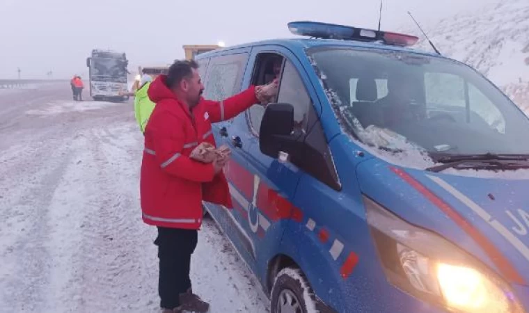 Erzurum ve Kars’ta kar yağışı etkili oldu; yollarda mahsur kalan sürücülere yiyecek dağıtıldı