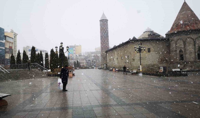 Meteorolojinin Erzurum’un için yaptığı 2 günlük kar yağışı başladı.