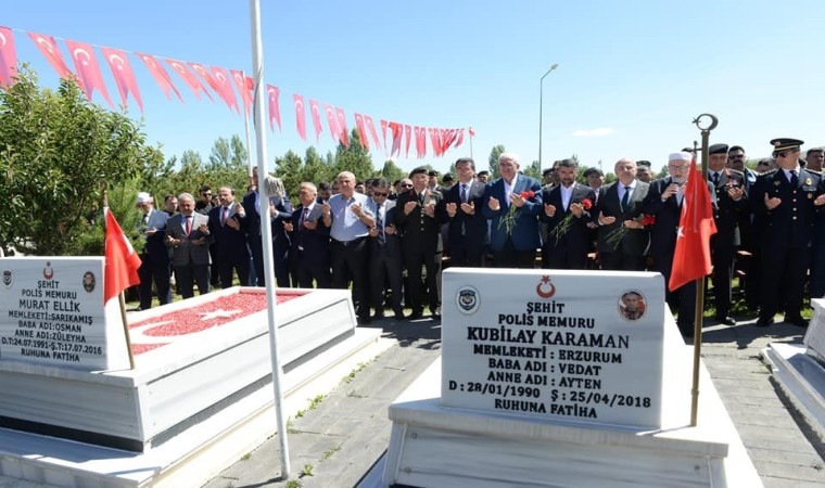 Vali Okay Memiş, Ak Parti Erzurum Milletvekili Mehmet Emin Öz, 9. Kolordu Komutanı Tümgeneral Fedai Ünsal, Jandarma Bölge Komutanı Tuğgeneral Metin Düz, Erzurum Büyükşehir Belediye Başkan Vekili Fevzi Polat, Atatürk Üniversitesi Rektörü Prof. Dr. Ömer Çomaklı, Erzurum Teknik Üniversitesi Rektörü Prof. Dr. Bülent Çakmak, İl Emniyet Müdürü Levent Tuncer, Ak Parti Erzurum İl Başkanı İbrahim Küçükoğlu ve il protokolünün katıldığı törenlerde şehit mezarlarına karanfil bırakıldı.