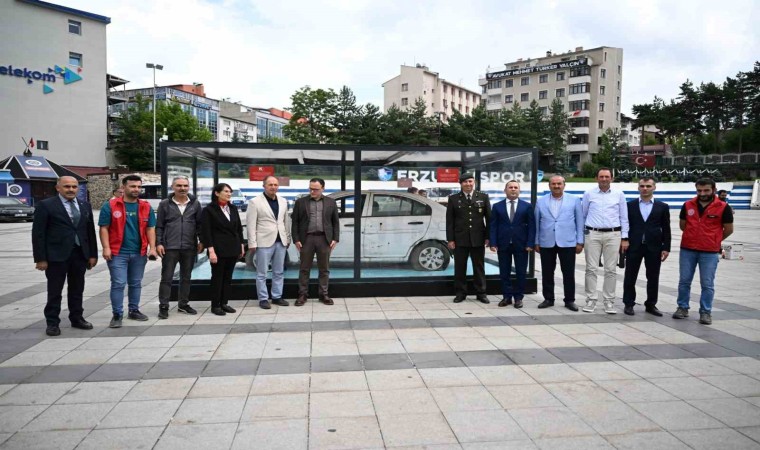 Erzurum’da 15 Temmuz Demokrasi ve Milli Birlik Günü vesilesiyle açılan ateş sonucu hurdaya dönen bir araç sergilendi.