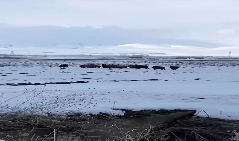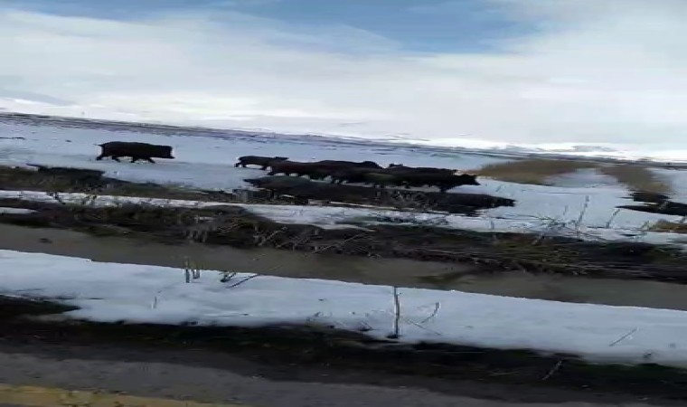 Köylerinden Erzurum’a gitmek için yola çıkan vatandaşlar bir anda karşılarında onlarca domuzun olduğu sürüyle karşılaştı. O anları cep telefonuyla kaydeden vatandaşların zaman zaman tedirgin oldukları da gözlendi. Domuz sürüsü de bir süre bekledikten sonra arazide kayıplara karıştı.