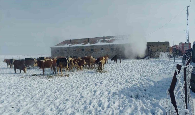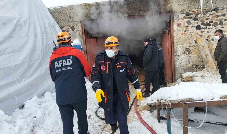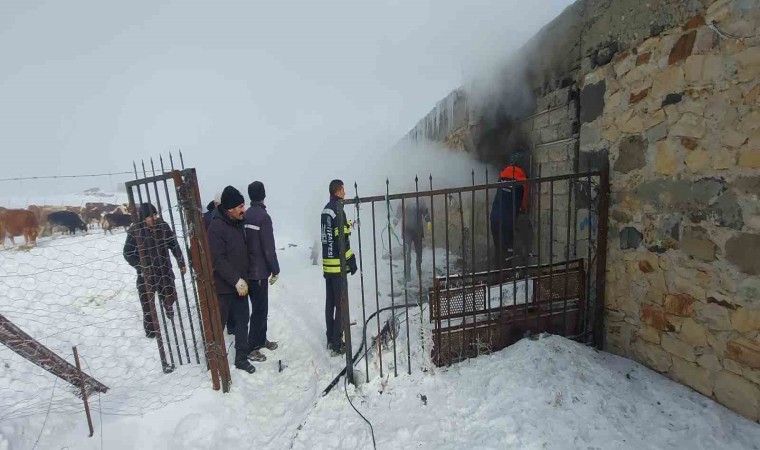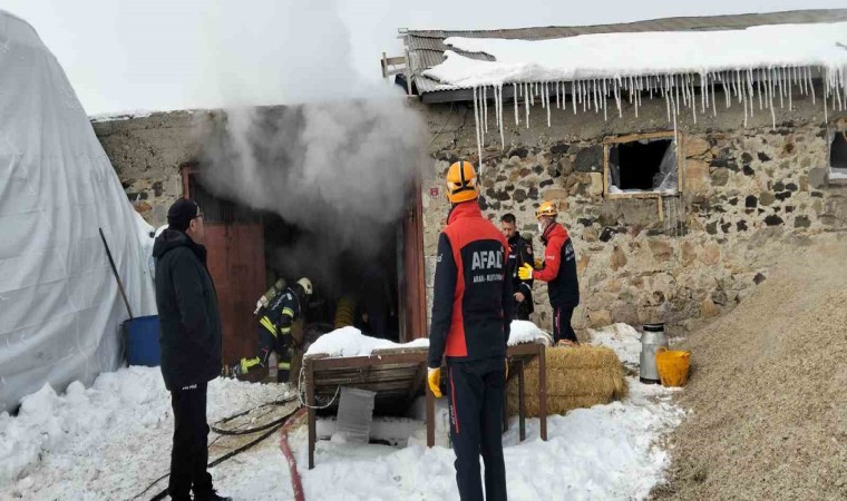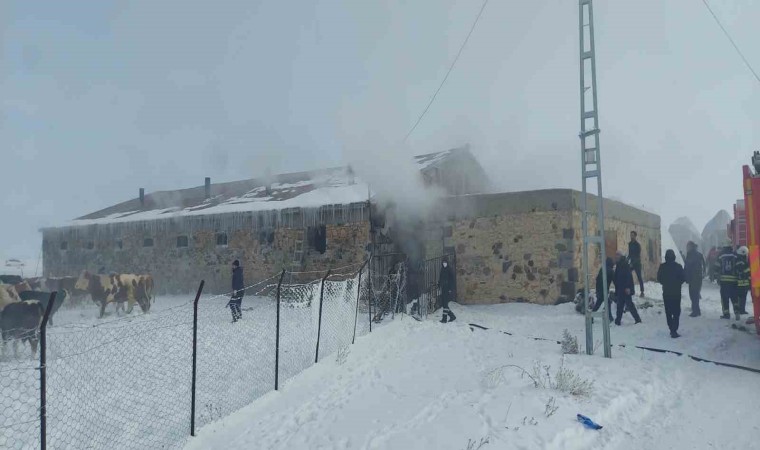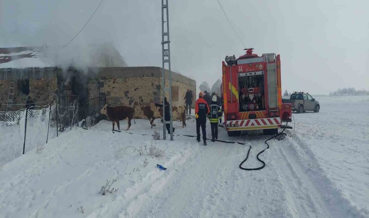 Erzurum’un Aziziye ilçesinde meydana gelen ahır yangını korkuttu.