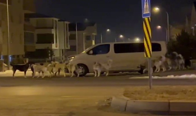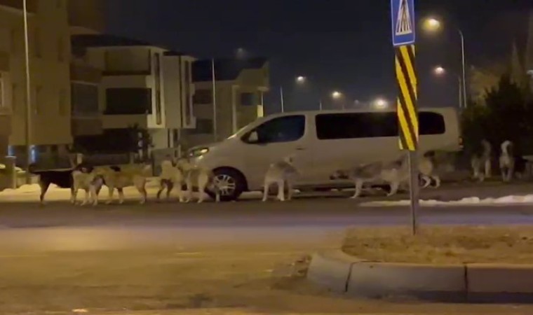 Gece saatlerinde Erzurum’da ortaya çıkan onlarca köpek vatandaşları tedirgin etti. Bir vatandaşın cep telefonu ile kaydettiği görüntülerde yaklaşık 20-25 köpeğin cadde üzerinde sürü halinde gezdiği ve zaman zaman birbiriyle dalaştıkları görüldü.