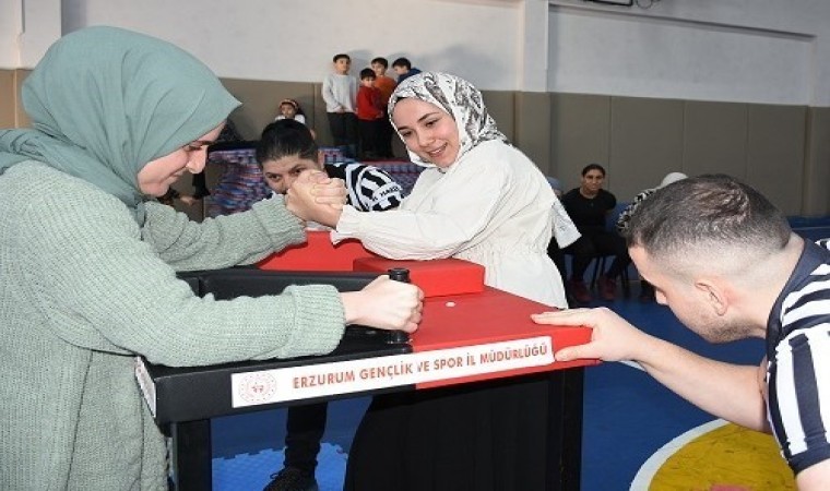 Erzurum’da YURTLİG kapsamında bilek güreşi heyecanı Yakutiye Gençlik Merkezimizde yaşandı. Kızlarda Hattat Hasan Çelebi Yurdu şampiyon oldu. Erkeklerde ise Aziziye birincilik kürsüsüne çıktı.