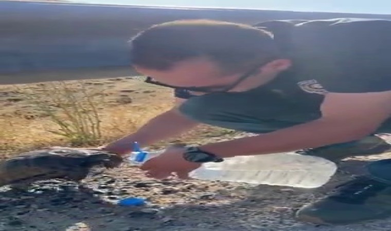 Erzurum polisi görev esnasında gördüğü ve susuz kalan kaplumbağaya eliyle sus içirdi. Erzurum Emniyet Müdürlüğü tarafından konu ile ilgili yapılan paylaşımda, “Sadece vatanı değil can dostlarımızı da koruyoruz. 12.09.2024 tarihinde İlçemiz Merkez Hınıs-Varto yolunda karşıdan karşıya geçmeye çalışan ve sıcaktan bitkin düşen kaplumbağa güvenli bölgeye alınmış ve su verilerek doğal ortamına bırakılmıştı.” denildi.