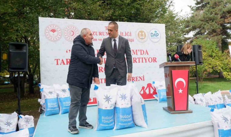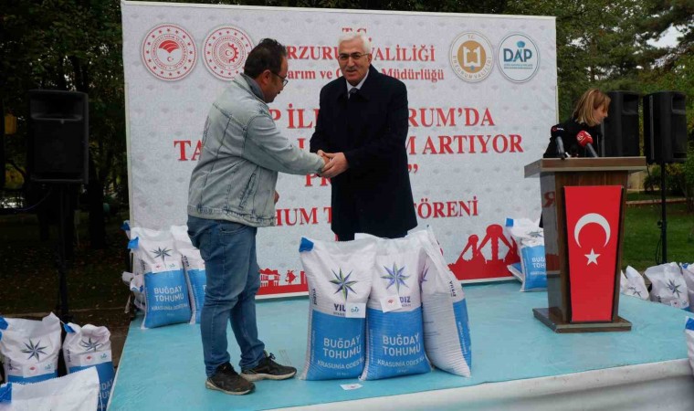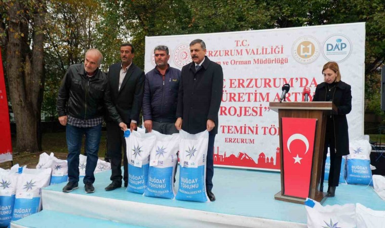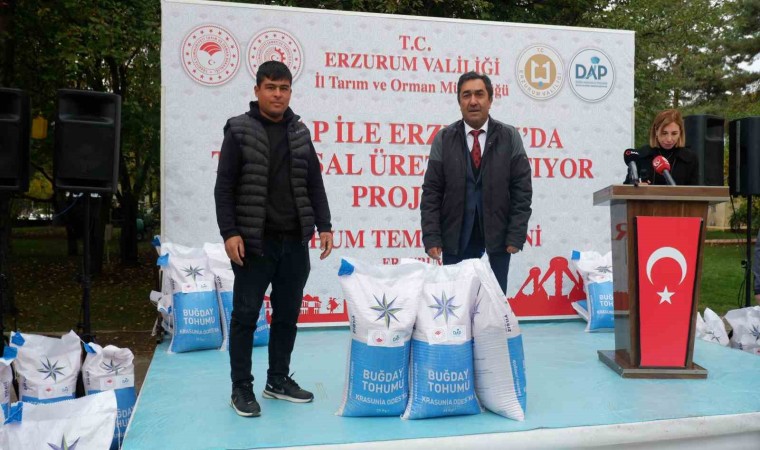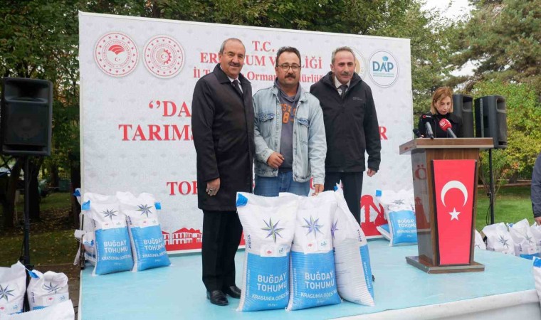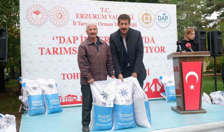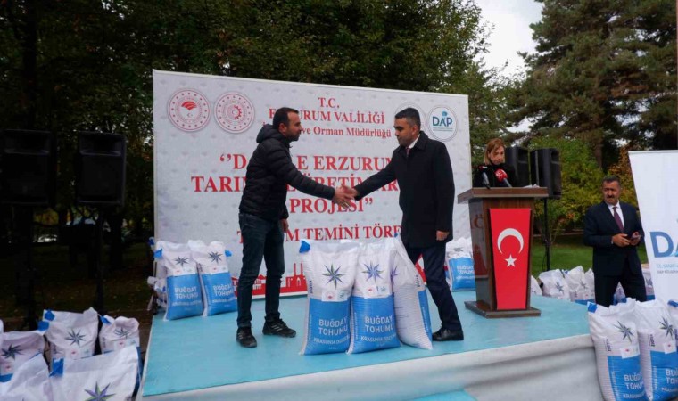 Erzurum’da DAP Başkanlığı’nın destek verdiği “Erzurum’da Tarımsal Üretim Artıyor Projesi” çevresinde bin 870 çiftçiye 935 ton buğday tohumu dağıtıldı.