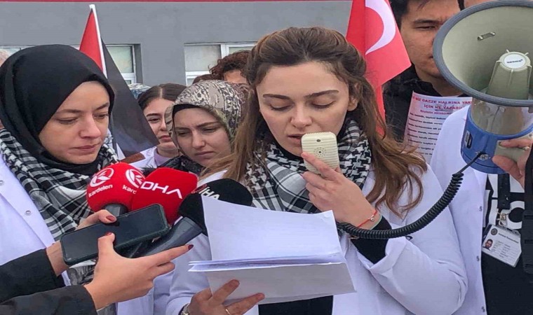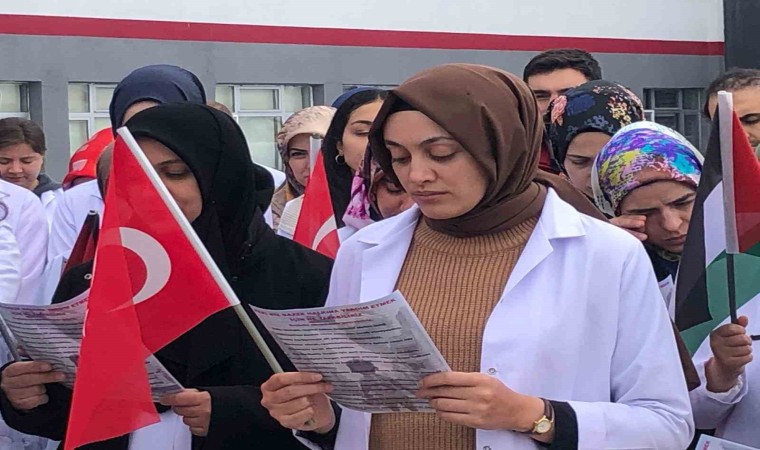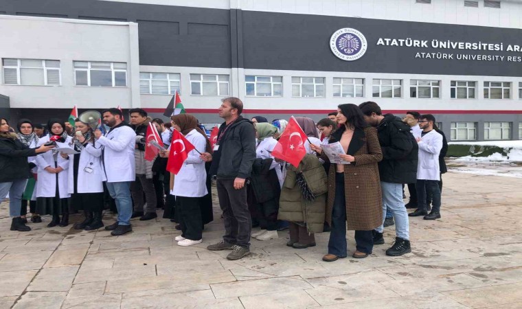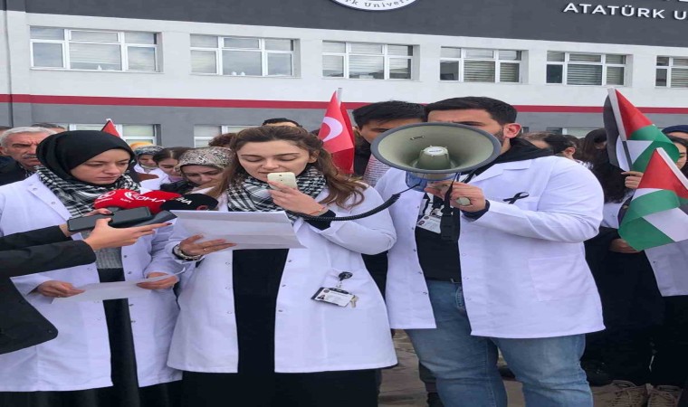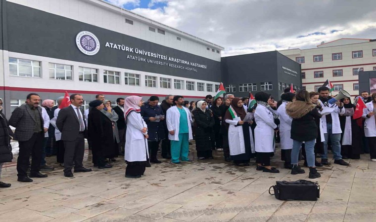 Atatürk Üniversitesi Araştırma Hastanesi’nde görevli doktorlar Gazze’de öldürülen sağlık görevlileri için basın açıklaması yaptı.