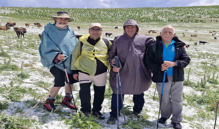 Erzurum’da 25 kişilik yürüyüş grubu 16 kilometrelik doğa yürüyüşü ile adeta dört mevsimi bir arada yaşadı.