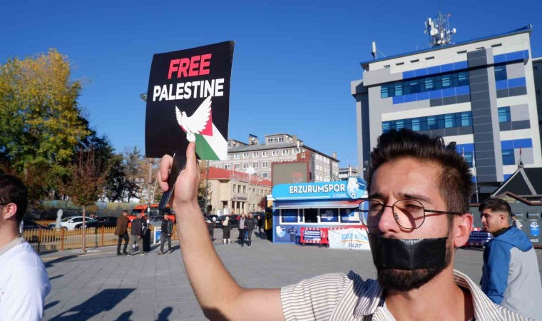 Erzurum’da bir grup genç, İsrail’in Gazze’de yaptığı vahşet ve insanlık ayıbını sessiz eylem ile protesto etti.