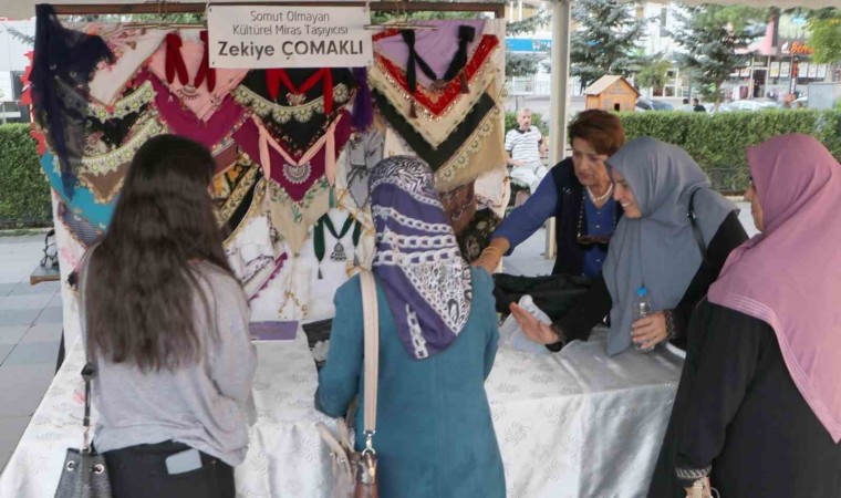 Erzurum yöresel el sanatlarından iğne oyaları Somut Olmayan Kültür taşıyıcısı olarak Zekiye Çomaklı’ya ait 60 ve 110 yıllık Oyalar koleksiyonu festival boyunca halkın beğenisine sunuldu.