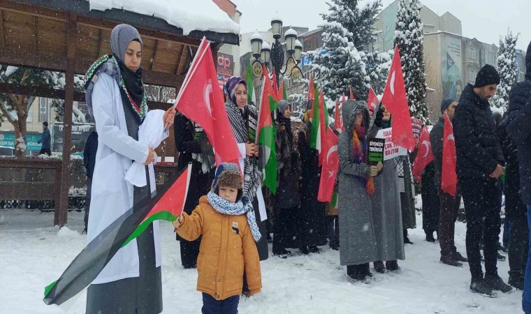 Lala Mustafa Paşa Cami önünde toplanan sağlık çalışanları, ellerinde taşıdıkları Türkiye ve Filistin bayrakları ile İsrail aleyhine yazıların yer aldığı dövizler ve pankartlarla yoğun kar yağışı altında Yakutiye Medresesi’ne yürüdü. Küçük çocukların da katıldığı yürüyüşte bazı kadın doktorlar, ellerinde kefenlenmiş bebek maketleri taşıdı.