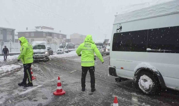 Karla kaplı yollarda ilerlemekte güçlük çeken sürücüler vatandaşların yardımıyla araçları iterek kar birikintilerinden kurtarmaya çalıştı.