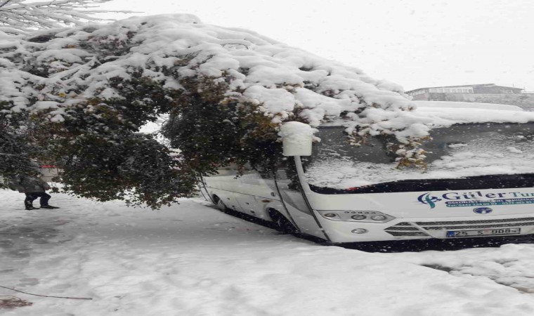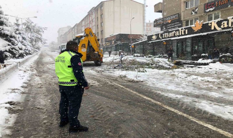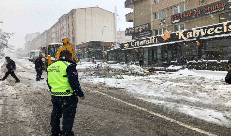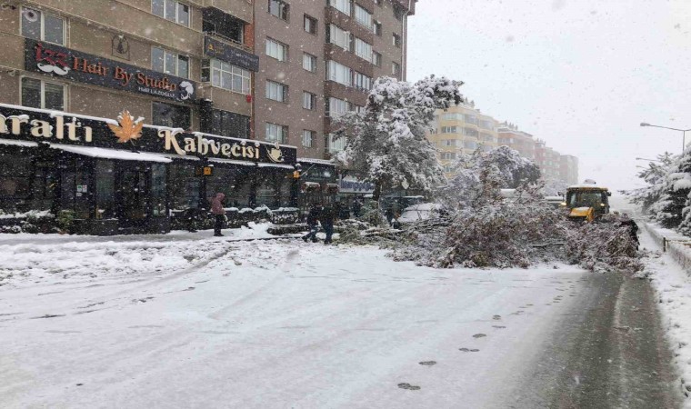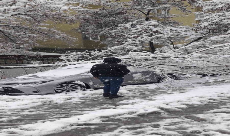 Erzurum’da gün boyu aralıksız devam eden kar yağışı adeta hayatı felce uğrattı. Araç ve yaya trafiğinin güçlükle ilerlediği şehirde onlarca ağaç kırılarak araçların üzerine devrildi.