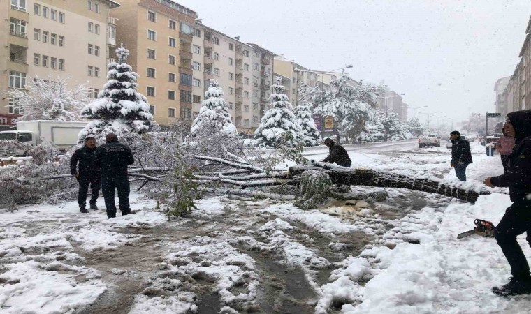 Erzurum’da sabah erken saatlerde başlayan ve aralıksız devam eden yoğun kar yağışı hayatı durma noktasına getirdi. Şehrin muhtelif bölgelerinde onlarca ağaç yağan ilk kar ile birlikte kırılarak yollara savruldu. Zabıta ekipleri kırılan ağaçları temizleyerek yolu ulaşıma açarken, yayalar yürümekte güçlük çekti.