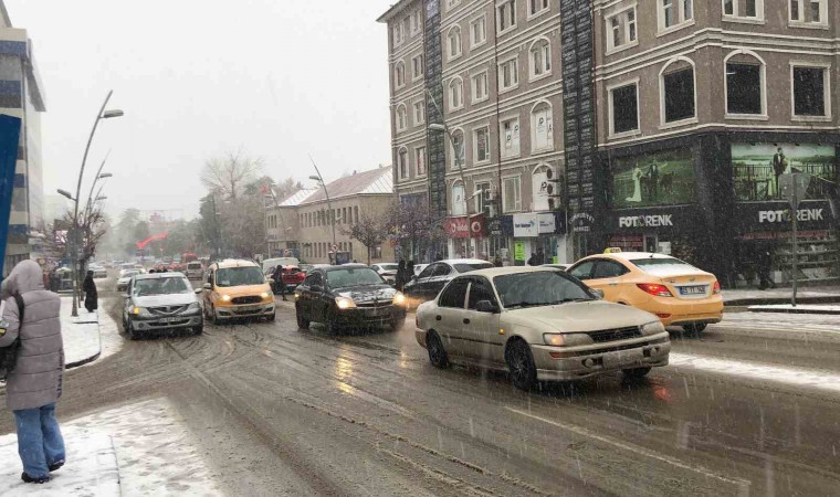 Erzurum’da öğle saatlerinde başlayan kar yağışı etkili tipi şeklinde oluyor.