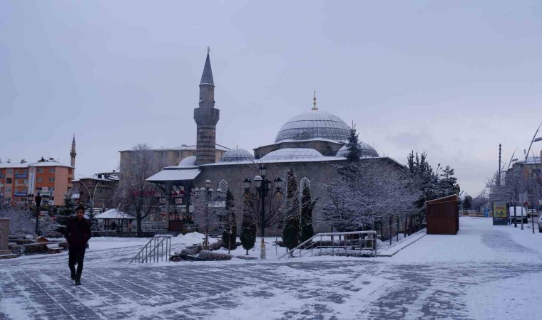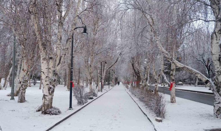 Erzurum’da gece etkili olan kar yağışı şehri beyaz bürüdü.
