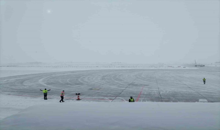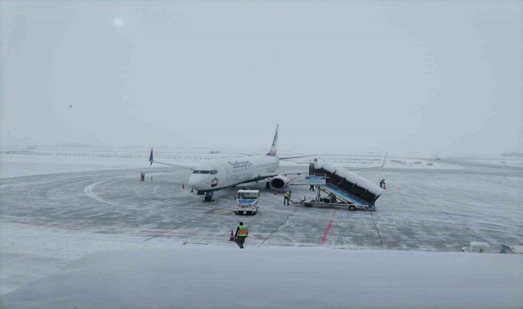Erzurum’u 3 gündür adeta esir alan yoğun ve aralıksız kar yağışına rağmen hava limanında uçakların iniş ve kalkışları güvenli şekilde sağlanıyor.