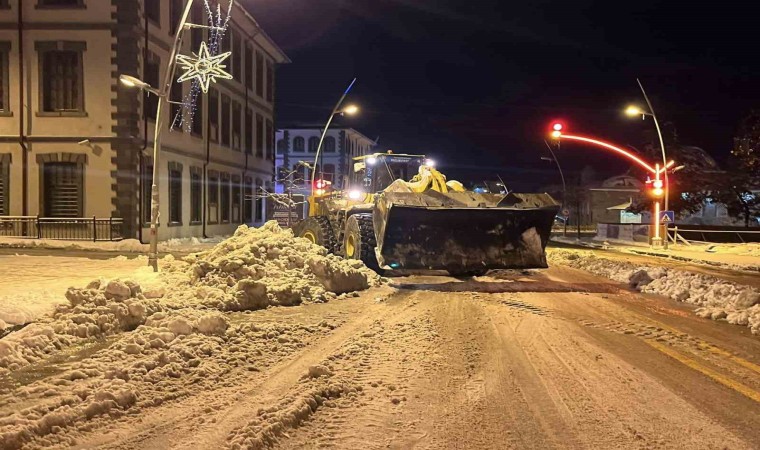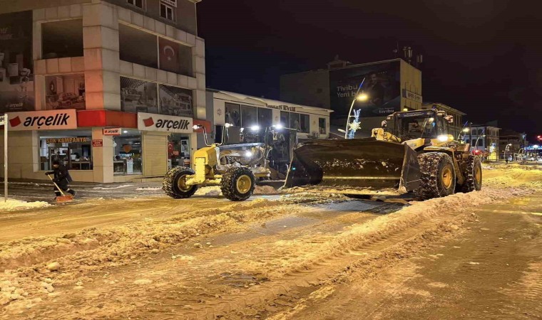 Erzurum’da etkili olan kar yağışı sonrası ekiplerin başta şehir merkezi olmak üzere il genelindeki çalışmaları devam ediyor.
