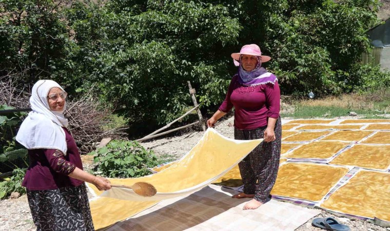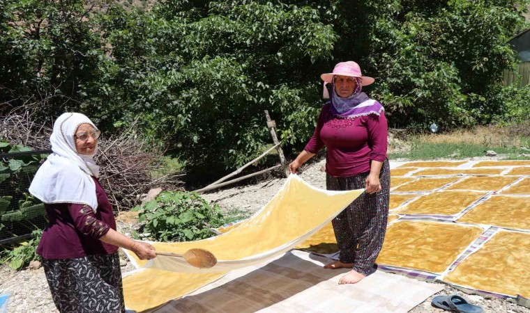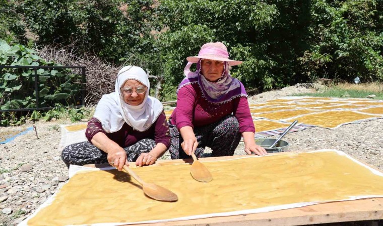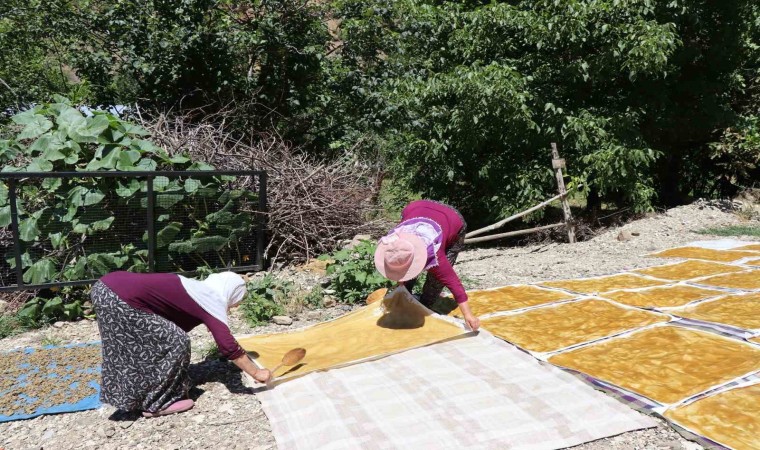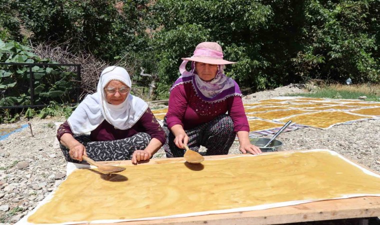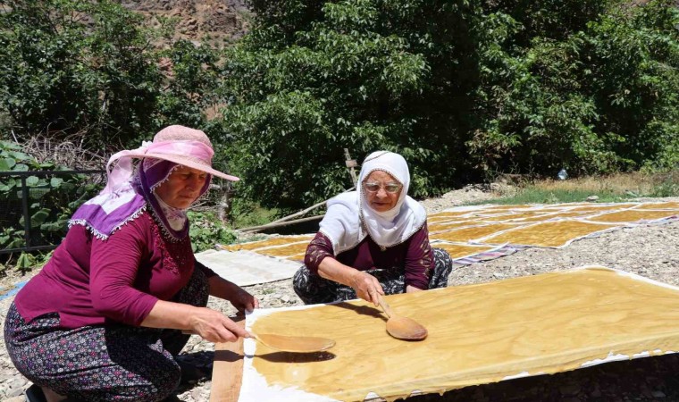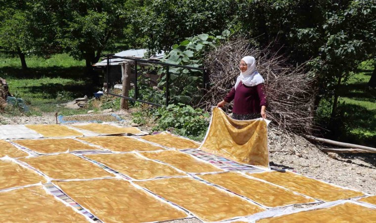 Ormanağzı köyü sakinlerinden Aycan Kalyon, “Dut sezonunun sonuna geldik. Bugün hava güneşli, biz de komşularla birlikte pestil yaptık” diye konuştu.