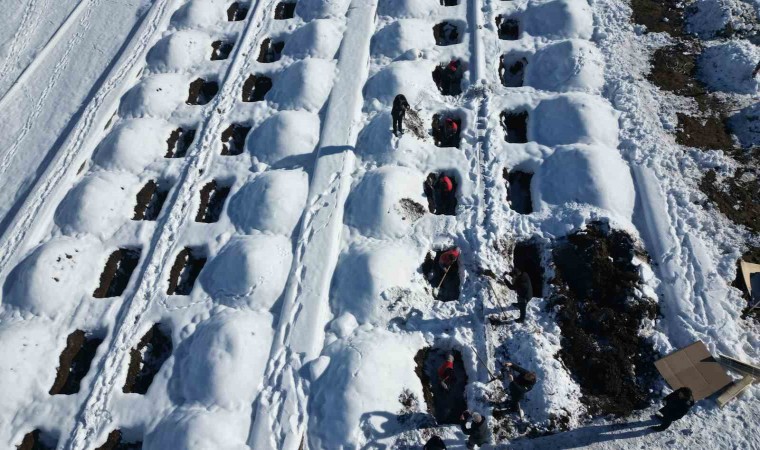 Kışın hava sıcaklığının sıfırın altında 30 dereceye kadar düştüğü Erzurum’da yüzlerce mezar yeri kış için hazır edildi. Erzurum Büyükşehir Belediyesi Mezarlıklar Müdürlüğü kış hazırlıkları kapsamında 500 mezar açtı. Erzurum’da şehir merkezinde bulunan Asri Mezarlığı’nda kış gelmeden yüzlerce mezar yeri iş makineleri ve personelin yardımıyla açıldı. Erzurum’da hem yoğun kar yağışı hem de özellikle toprağın donması nedeniyle kış aylarında mezar yerlerinin açılması nerede ise imkansız hale geliyor. Yetkililer bu yüzden yaz aylarında kış için hazırlık yapıyor ve çukurları defin için hazırlıyor.