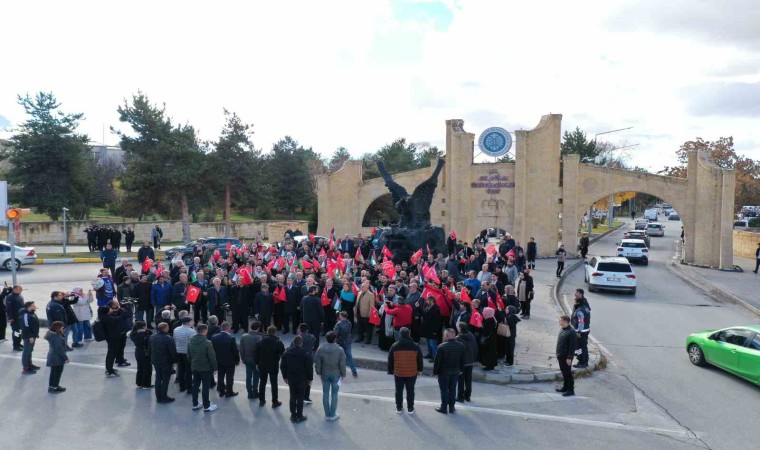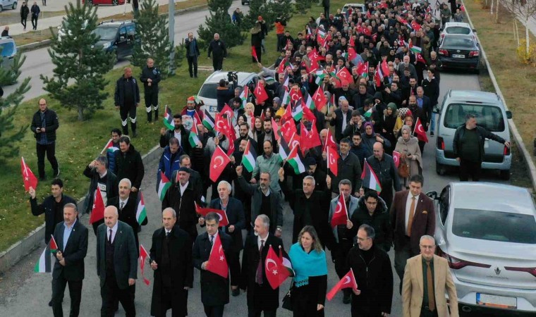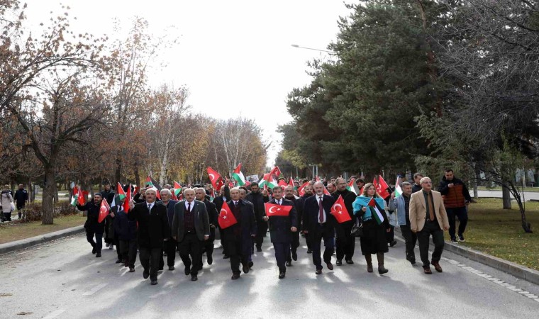 İsrail’in Gazze’ye yönelik saldırılarını protesto eden Atatürk Üniversitesi akademisyen ve öğrencileri, slogan atarak yürüyüş yaptı.