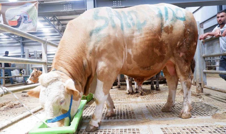 Kurban Bayramı'na yaklaşırken, Erzurum'da bulunan Doğu Anadolu Canlı Hayvan Pazarı'nda dikkat çeken bir tosun herkesin ilgisini çekiyor. Adı "Şahdadaş" olan bu 4 yaşındaki tosun, yaklaşık 1 ton 200 kiloluk ağırlığıyla büyük bir ilgi görüyor. Şahdadaş, pazarda sergilediği iri cüssesi ve uysal tavırlarıyla gözleri üzerine çekiyor. Hayvanın sahibi Hatem Yıldırım, Erzurum'un en büyük tosununu yetiştirmenin heyecanını yaşadıklarını belirtirken, "Şahdadaş'tan ayrılmak zor. Şu anda 185 bin lira fiyat koyduk. Elbette ciddi alıcısı çıkarsa pazarlık yaparız. Bakalım kime nasip olacak" dedi. Kurban pazarlarında hareketlilik artarken, Şahdadaş adlı bu özel tosun, bölgedeki ilgiyi üzerine topluyor.
