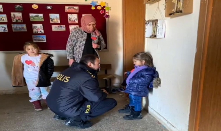Erzurum’a bağlı Hınıs İlçe Emniyet Müdürlüğü personeli, Yolüstü İlkokulu ile Anaokulu öğrencilerini "Minik Kalplere Küçük Dokunuş" mottolu sosyal sorumluluk projesi kapsamında ziyaret etti. Yaklaşık 23 öğrenciye ikramların ardından çeşitli kırtasiye, spor malzemesi ve oyuncak dağıtımı yaptı. Polisler çocuklarla birlikte hazırlanan sinema ortamında "Rafadan Tayfa: Trafik" konulu öğretici çizgi film izledi ve keyifli vakitler geçirdi.