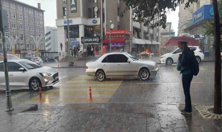 Erzurum’da akşam saatlerinde etkili olan sağanak yağış hayatı olumsuz olarak etkiledi.