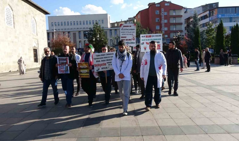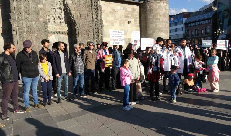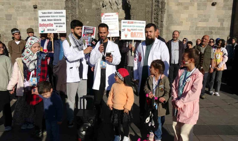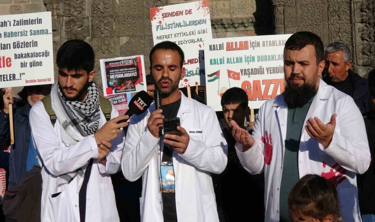 Erzurum Lala Mustafa Paşa Camisi’nin önünde bir araya gelen sağlık çalışanları, taşıdıkları pankartlarla Yakutiye Medresesi’ne doğru yürüdü. Daha sonra Yakutiye Medresesi önünde toplanan grup adına Atatürk Üniversitesi Tıp Fakültesi öğrencisi Hakan Sümbül bir konuşma yaptı ve Gazze’de büyük acıların yaşandığını ifade ederek, dünya devletlerinin Gazze için gerekenleri yapmadığına söyledi.