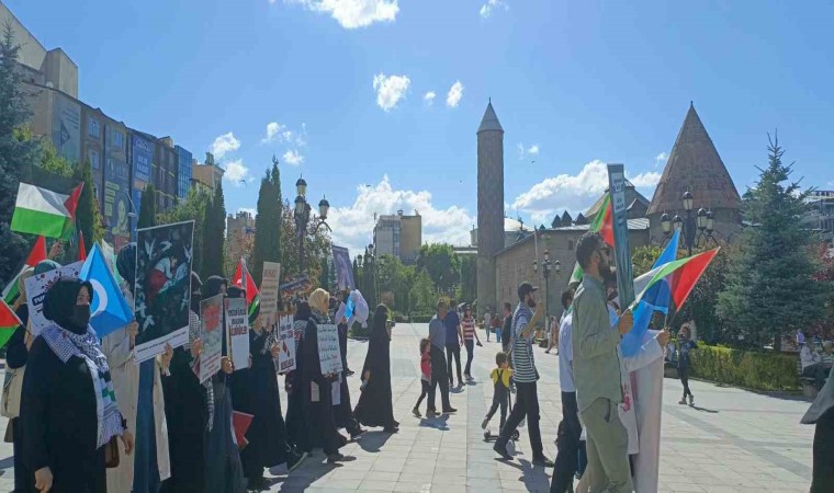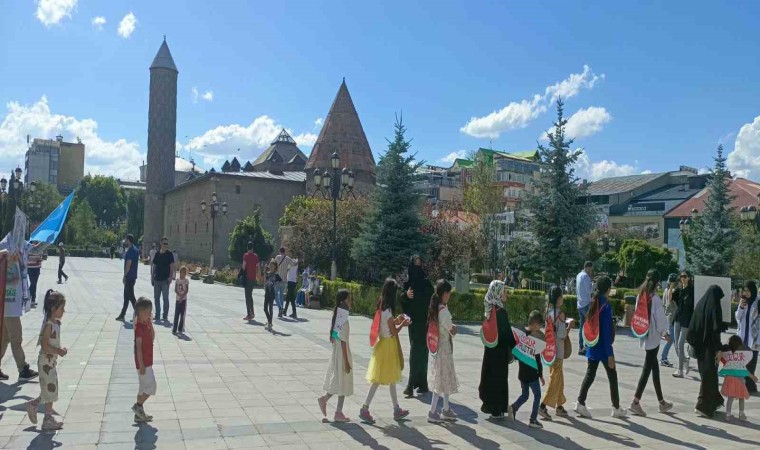 Dua edeceklerini, duyurmaya devam edeceklerini haykıran yürüyüşçüler, “Boykot edeceğiz, boykot edeceğiz, ömür boyu boykot edeceğiz, direneceğiz, öğreneceğiz ve öğreteceğiz, infak edeceğiz, hatırlatacağız ama asla unutmayacağız inşallah. Yaşananlar film sahnesinden bir kesit değil. Geçtiğimiz haftalarda Nuseyrat kampına saldırı düzenlendi, çok sayıda şehit ve yaralı var. Açlıktan ölen sayısı her geçen gün artıyor. Yine dün 5 yaşındaki bir çocuğun açlıktan 8 kiloya düşmüş halini gördük. Bayram günü bir kız çocuğunun babasının cesediyle bayramlaşmasını izledik. Köpeklerden destek alan ama köpek kadar vicdanı olmayan ordunun üyesi olan bir köpeğin yaşlı bir kadını masumca uyuduğu yatağından kan revan içinde kolundan çeke çeke evinden çıkardığını gördük. Yaptığı katliamdan en ufak bir ders almayan terör devleti, kana susamışçasına Refah’ta, yeryüzünde en fazla insan yoğunluğu olan o küçücük alanda kara operasyonuna devam etmekte, insanları yakarak öldürüyor.” diye konuştular.