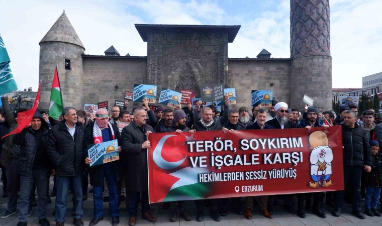 İsrail’in Gazze’ye yönelik saldırılarını protesto etmek amacıyla Erzurum’da görevli sağlık çalışanları, sessiz yürüyüşte bir kez daha bir araya geldi.