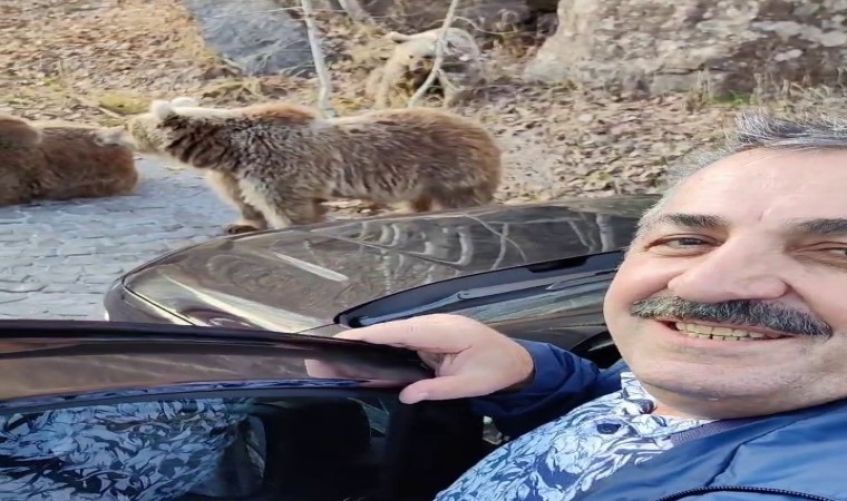Erzurum’dan ailesiyle birlikte Nemrut Kalderası’nı ziyaret eden ve Erzurum’da lokanta işletmecisi olan Numan Torun, boz ayılarla karşılaşmanın heyecanını ailesiyle yaşadı. Bir yandan ayıları besleyen, bir yandan da kendine has üslubu ile ilginç sözler ifade eden Numan Torun, o anları cep telefonuna da kaydetmeyi ihmal etmedi. Konuşmaları ile ailesini ve çevredeki vatandaşları kahkahalara boğan Numan Torun, zaman zaman korkusunu gizleyemedi.