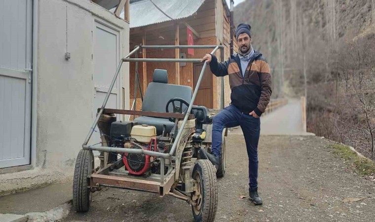 Erzurum’un Uzundere ilçesine bağlı Ulubağ Mahallesinde yaşayan 28 yaşındaki Mehmet Algün, mahalle sokaklarının dar olması nedeniyle araçların yük taşımasında yaşanan soruna kendi tasarladığı araç ile çözüm buldu.