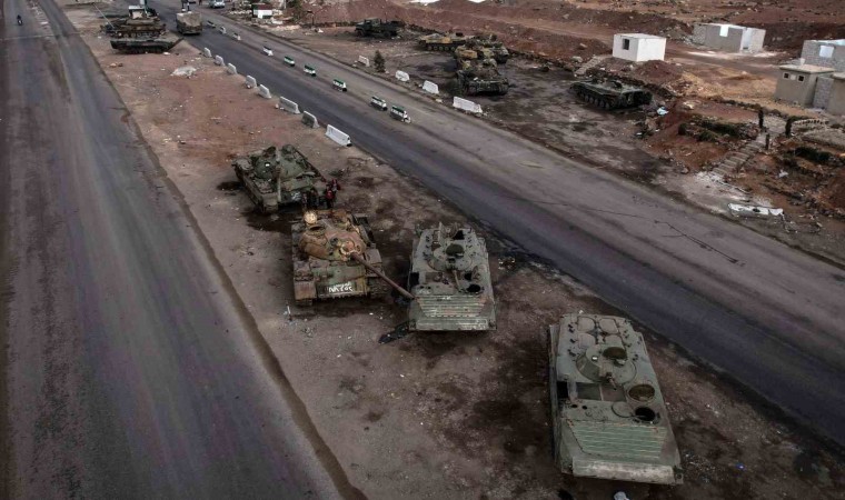 Suriye’de Beşar Esad rejiminin muhaliflerin ilerleyişini engellemek amacıyla aldığı önlemler gün yüzüne çıkmaya devam ediyor. Muhaliflerin rejime karşı başlattığı operasyonu engelleyemeyen devrik lider Esad’ın tankları ülkenin dört bir yanında sergileniyor. Esad’ın muhaliflerin başkent Şam’a girmesini engellemek amacıyla kentin girişine konuşlandırdığı çok sayıda tank ve zırhlı araç, otoyolda terk edilmiş halde havadan görüntülendi. Kamera görüntülerinde kontrol noktalarındaki cepheye yerleştirilen tankların sınır hatlarında ilerlemeyi durduracak şekilde konuşlandırılması dikkat çekti.
