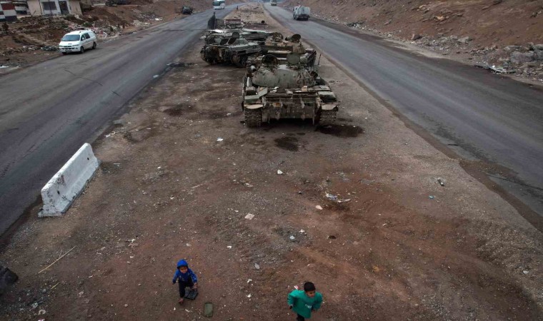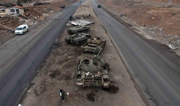 Suriye’de Beşar Esad rejiminin muhaliflerin başkent Şam’a girmesini engellemek amacıyla kentin girişine konuşlandırdığı onlarca tank, otoyolda terk edilmiş halde görüntülendi.