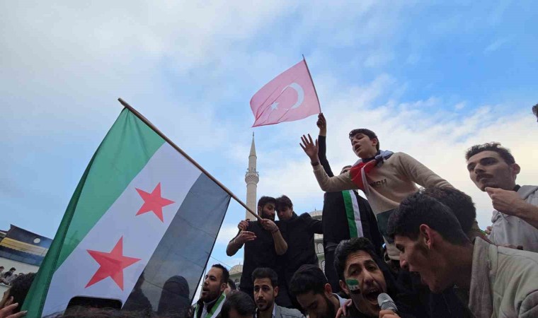 Toplanan grup, saatlerce Esed rejiminin çöküşünü kutladı.