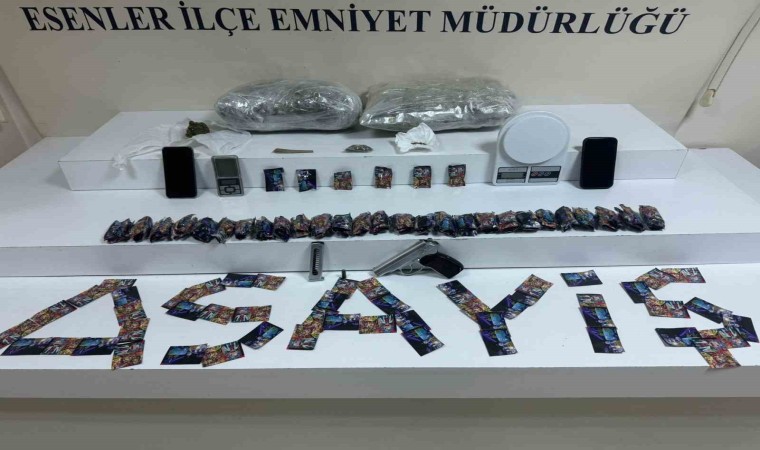 Esenler İlçe Emniyet Müdürlüğü’ne bağlı Asayiş Büro Amirliği ekipleri ihbar üzerine bir eve operasyon düzenledi. Ekipler evde yaptıkları aramada, sakız kutuları içinde gizlenmiş yaklaşık 2.5 kilogram mariuhana, çok sayıda uyuşturucu madde ambalajı, 2 cep telefonu, 100 dolar, 2 hassas terazi ve 1 ruhsatsız silah ele geçirdi. Operasyonda şüpheliler M.Ü ile K.A.A. yakalandı. Gözaltına alınan şüpheliler emniyetteki işlemlerinin ardından sevk edildikleri adli makamlarca "uyuşturucu madde ticareti” suçundan tutuklanarak cezaevine gönderildi.