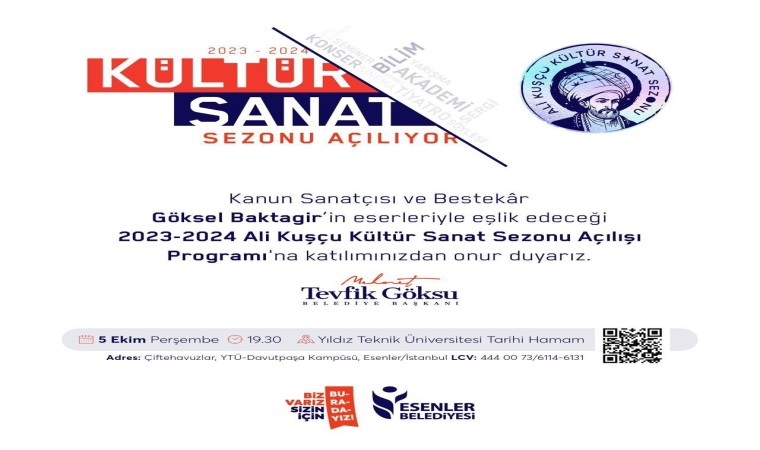 Esenler Belediyesi kültür-sanat sezonlarını tarihi bir kişiliğe atfetme geleneğini bu yıl da sürdürüyor. Esenler’de 2023-2024 Kültür-Sanat Sezonu, Fatih Sultan Mehmet Han tarafından Ayasofya Medresesi’ne müderris olarak tayin edilen Türk astronom, dil bilimci ve matematikçi Ali Kuşçu’ya ithaf edildi.