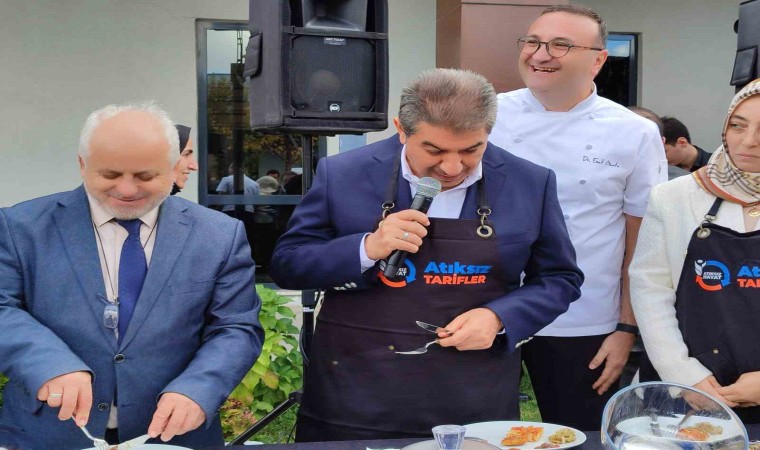 İki yıl boyunca yapılan işlerden bahseden Şef Esat Özata ise “İki sene boyunca güzel işler yaptık. 6 dönem boyunca atıksız mutfak atölyeleri yaptık. ‘Atık yapma katık yap’ mottosuyla hareket ediyorum. Arta kalan yiyecekleri diğer yiyeceklerle entegre ediyoruz. Kitabımız 60 tariften oluşuyor. Bunların 20 tanesi tatlı, 40 tanede diğer tarifler var. Her tarifin altında QR kodu var” şeklinde konuştu.