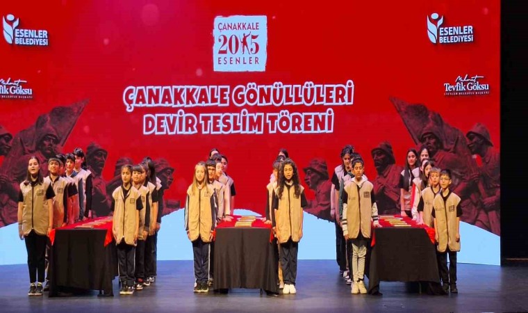 Esenler Belediyesi’nin Çanakkale Savaşı’nın 100’üncü yılında hayata geçirdiği ‘Çanakkale Gönüllüleri’ projesindeki, ‘Esenler’in 15’lileri olarak adlandırılan gençler, düzenlenen törenle Türk bayrağını yeni arkadaşlarına devretti. Esenler Dr. Kadir Topbaş Kültür Sanat Merkezinde gerçekleştirilen programda, 7. sınıf öğrencileri, sorumlu öğretmenlerinin gözetiminde yeni gönüllülere mushaf ve bayrağı teslim etti. Törene, Esenler Belediye Başkan Yardımcısı Ömer Çetinkaya, Esenler İlçe Milli Eğitim Müdürü Feyzullah Sert, öğretmenler, öğrenciler ve veliler katıldı.