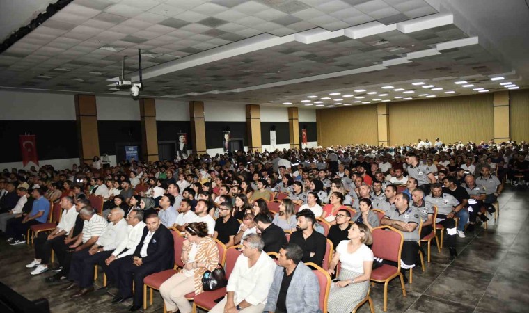 Esenyurt Belediyesi’nde personele yönelik periyodik olarak sürdürülen eğitim seminerleri devam ediyor. Belediye Kültür Merkezi’ndeki seminerin ardından çalışma arkadaşlarına seslenen Esenyurt Belediye Başkanı Kemal Deniz Bozkurt, görevlerinin Esenyurtluları mutlu ve huzurlu kılmak olduğunu belirtti.