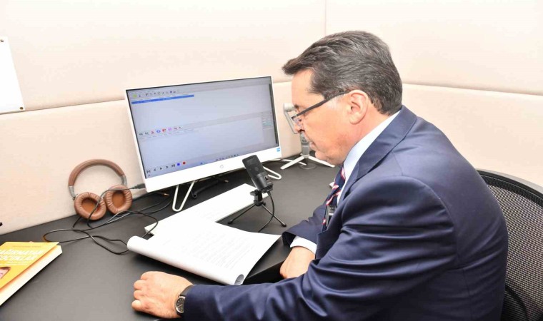 Başkan Prof. Dr. Ahmet Özer, programın ardından görme engelli vatandaşlar için hayata geçirilen Engelsiz Kütüphane’ye geçerek “Kitap ve Ben” makalesinden bir kısım olan Yazmanın Büyüsü’nü seslendirdi.