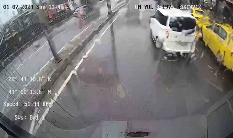 Esenyurt’ta seyir halindeki İETT otobüsünün yol kenarındaki direğe çarpması sonucu 6 kişinin yaralandığı kaza anı, araç içi kamerası tarafından saniye saniye kaydedildi.