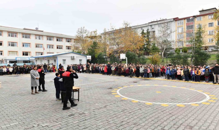 Esenyurt Belediyesi ekipleri, ilçede bulunan okulları tek tek dolaşarak hem deprem bilinci eğitimi veriyor hem de deprem tahliye tatbikatı yapıyor. Muhtemel bir İstanbul depreminin riskini en aza indirmek amacıyla yürütülen çalışmalarda öğrenciler bilinçlendiriliyor. Öğrencilere deprem öncesi ve sonrasında yapılması gerekenler hakkında bilgiler veren yetkililer, şu ana kadar 30 okulda 60 bin öğrenci ve 2 bin öğretmene afet bilinci eğitimi vererek tahliye tatbikatları yaptıklarını bildirdi.