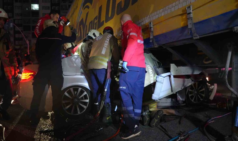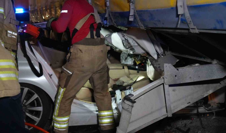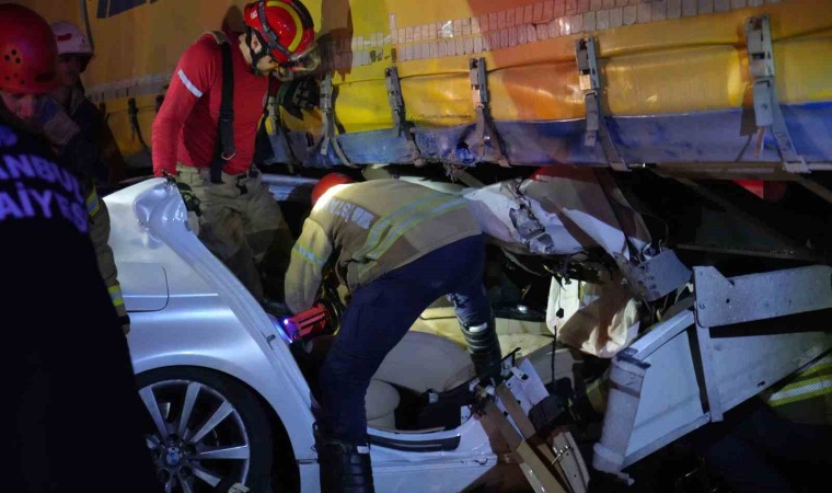 Esenyurt’ta kontrolden çıkan otomobil, trafik ışıklarından dönüş yapan tırın dorsesinin altına girdi. Dorsenin altında kalan otomobildeki sürücü araçta sıkıştı. Yaklaşık 1 saat yaşam savaşı veren sürücü, itfaiye ekiplerince kurtarıldı.